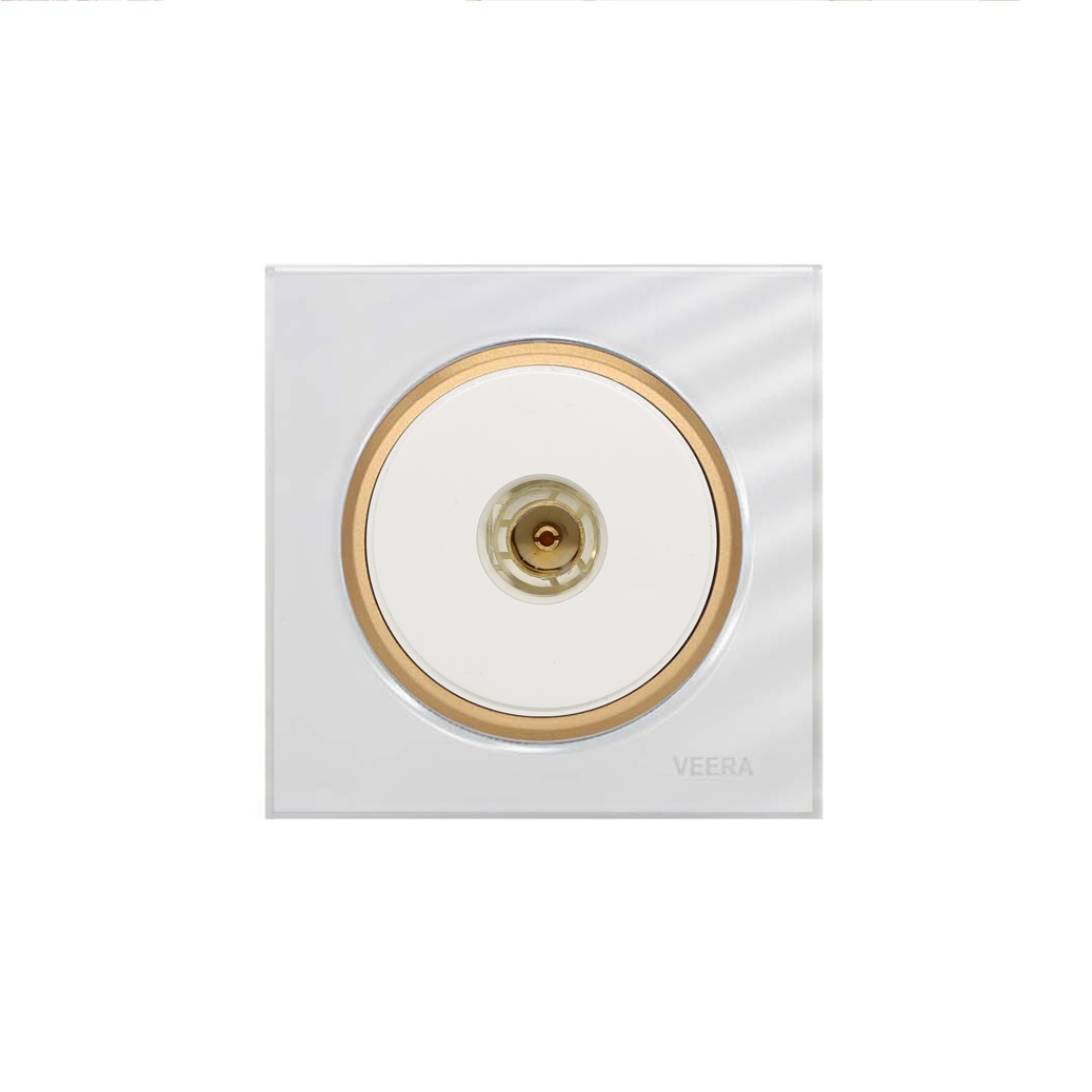 پریز برق ارت دار آلفا زه طلایی، جنس گلس، طرح اسپرت (رنگ سفید)