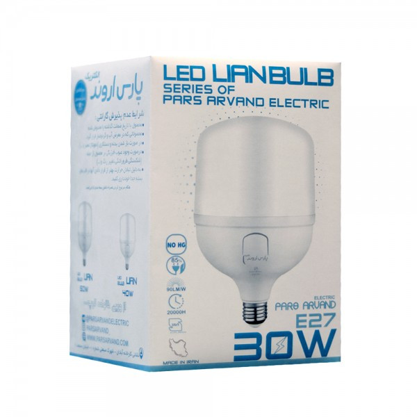 یکی از محصولات شرکت پارس اروند الکتریک لامپ های ال ای دی 30 وات استوانه ای می باشند که در سه رنگ آفتابی،مهتابی و یخی موجود می باشند. جنس بدنه این لامپ پلاستیک است که در مقابل ضربه و فشار مقاومت بسیار بالایی دارند. سرپیچ این لامپ ها از نوع E27 است و به راحتی قابل نصب می باشد.به دلیل مصرف پایین انرژی و طول عمر بالا و پخش نور کاملا یکنواخت گزینه مناسبی جهت روشنایی مکان های عمومی،اداری،تجاری،هتل ها و ... می باشد.لامپ های ال ای دی استوانه ای پارس اروند ها فاقد هرگونه اشعه و مواد سمی مانند جیوه می باشند بنابرین آسیبی به چشم و پوست وارد نمی کنند. همچنین به دلیل عدم ایجاد اشعه ماورا بنفش و مادون قرمز و کاهش تولید گازهای گلخانه ای از محصولات دوستدار محیط زیست محسوب می شود..از بهترین ویژگی های لامپ های استوانه ای پارس اروند می توان به کاهش هزینه های ا نرژی تا 80 درصد نسبت به لامپ های رشته ای، روشن شدن آنی، مقاومت بالا در برابر روشن و خاموش شدن زیاد، شاخص نور بالای 80 درصد و نور دهی طبیعی بدون ایجاد خستگی چشم و همچنین زاویه تابش گسترده ی آن نیز اشاره کرد.