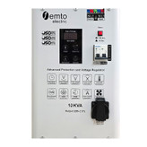 استابلایزر رله ای هوشمند Stab-10000 محصولی از شرکت دانش بنیان تجهیزات ابزارآزما (برند فمتو الکتریک) است که نوعی محافظ هوشمند برای لوازم برقی می باشد. این محصول دارای کاربری صنعتی، خانگی و اداری بوده و دارای حفاظت های لازم جهت ایجاد ضریب اطمینان بالا و افزایش طول عمر تجهیزات الکتریکی می باشد. این دستگاه می تواند پشت کنتور برق ورودی ساختمان قرار گرفته و تمام تجهیزات الکتریکی را در برابر صاعقه، افزایش و کاهش ناگهانی و دایمی ولتاژ (در محدوده 145 تا 255 ولت)، نویز، نوسانات برق شهر و اتصال کوتاه داخلی وسایل برقی متصل به آن محافظت نماید. در صورت استفاده از این دستگاه خسارت های ناشی از نوسانات برق کاهش می یابد. همچنین دستگاه در مقابل اضافه بار و افزایش دما حفاظت شده می باشد. لوازمی از قبیل کولرهای گازی و آبی، ماشین لباس شویی، ماشین ظرف شویی، ماکرویو، یخچال، تلویزیون و کنسول های گیم و… در منازل، مورد حفاظت خواهند بود . در شرکتها و سازمانها، بهتر است که ماشینهای اداری و تجهیزات آزمایشگاهی که به نوسانات برق بسیار حساس هستند و دچار صدمه می شوند، مورد حفاظت این دستگاه قرار گیرند. عملکرد استابلایزر به نحوی است که برق مصرفی این تجهیزات تحت شرایطی پایدار قرار گیرد. توان اسمی این استابلایزر 10000KVA با جریان خروجی 40 آمپر می باشد . این محصول با بهرهگیری از نمایشگری دیجیتال ولتاژ ورودی را به صورت لحظهای به کاربر نمایش میدهد .