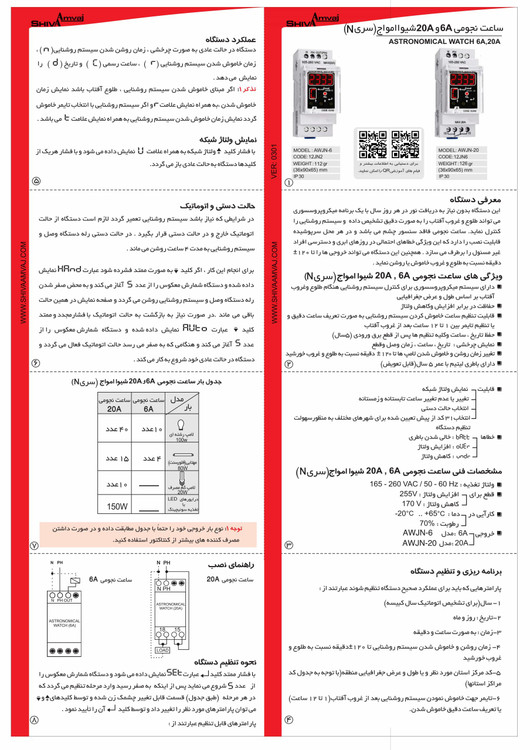 ساعت نجومی 20A سری N،بدون نیاز به دریافت نور در هر روز سال با یک برنامه میکروپروسسوری می تواند طلوع و غروب آفتاب را به صورت دقیق تشخیص داده و سیستم روشنایی را کنترل نماید.