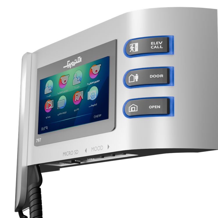 گوشی تصویری ۷۹۷ یکی از مدلهایی است که علاوه بر ظاهری زیبا دارای ویژگیهایی از قبیل، امکان فرمان به آسانسور، دارای حافظه داخلی و امکان نصب کارت حافظه، با امکان پشتیبانی فیلمها با ضبط صدای مراجعهکنندگان ،امکان اتصال به دوربین مداربسته ،امکان تنظیم ملودی و امکان تنظیمات رنگ و روشنایی در تصویر، تنظیمات زمان و تاریخ و قابلیت اتصال به دو پنل را دارد. این ویژگیها محصول گوشی تصویری مدل ۷۹۷ را تبدیل به یک گزینه مناسب برای افرادی کرده که علاوه بر قابلیتهای محصول، به ظاهر آن نیز توجه زیادی دارند نموده است. در تولید بردهای الکترونیکی محصول از فنّاوری SMT با پکیج ۰۶۰۳ استفادهشده است. همچنین فیبر بردهای الکترونیکی از نوع KB۶۱۶۰ است. از جمله قابلیت های این محصول میتوان به قابلیت فراخوانی آسانسور اشاره کرد. این قابلیت این امکان را فراهم می آورد که از درون واحد با فشردن دکمه تعبیه شده بر روی گوشی، کابین آسانسور را به طبقه ای که در آن ساکن هستید منتقل کنید که این امر باعث صرفه جویی در زمان شده و راحتی بیشتری را برای ساکنین منزل فراهم می آورد.