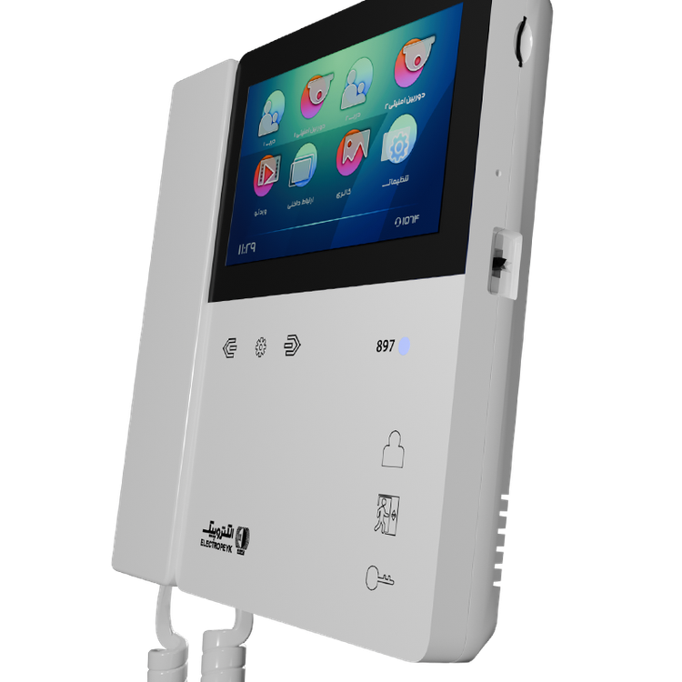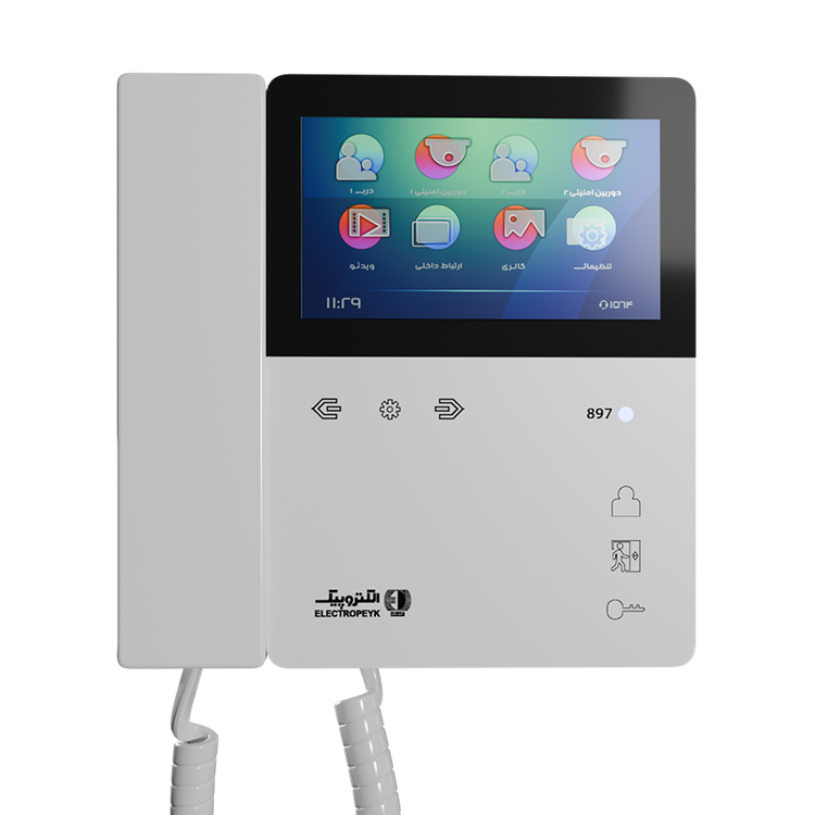 گوشی تصویری ۸۹۷ یکی از جدیدترین محصولات شرکت الکتروپیک است. این محصول طراحی بسیار مینی مال و چشمنوازی داشته و با قابلیت اتصال دسته گوشی به بدنه بهصورت مغناطیسی محصولی منحصربهفرد در بازار بشمار میآید. در قسمت جلوی محصول مانیتور ۴.۳ اینچ از نوع LCD-TFT قرار دارد که از طریق چهار عدد کلید لمسی که در زیر آن قرار دارد میتوان وارد منوی تنظیمات محصول شد و از امکانات مختلف محصول استفاده کرد. همچنین در قسمت سمت راست محصول نیز سه عدد کلید لمسی دیگر بهمنظور انجام عملیاتی نظیر مشاهده تصویر مراجعهکننده، برقراری ارتباط داخلی و قفل بازکن قرار دارد. همانطور که گفته شد ویژگی متمایز این محصول اتصال دسته گوشی به بدنه از طریق نیروی مغناطیسی است که عملیات قطع تماس صوتی و تصویری نیز از همین طریق انجام میشود. جنس بدنه این محصول از مواد ABS ساختهشده مقاومت بالایی را در برابر کهنگی و تغییر رنگ به آن داده است.