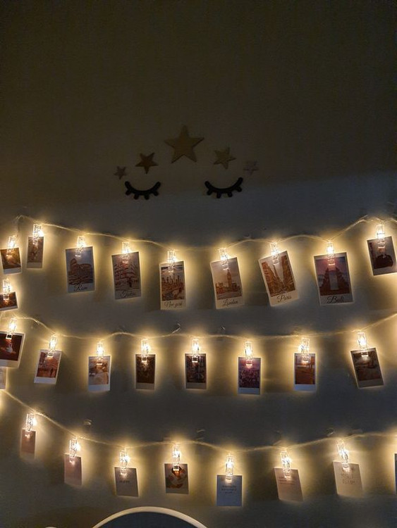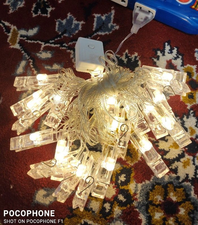 ریسه ال ای دی مدل گیره عکس کد 20Lamp، دارای گیره های کریستالی ساده میباشد،که میتوان عکس های یادگاری خود و یا کارت پوستالهای خود را به آن آویزان نمایید.اگر شما هم قصد تزئین تولد و یا تغییر دکوراسیون اتاق خود را دارید این ریسه گزینه بسیار مناسبی برای شما میباشد و در تاریکی شب با روشن کردن آن خاطرات شیرین که در تصاویرتان برای شما تداعی خواهد شد خواب دلچسب تری را به چشمانتان هدیه میکند. این ریسه شامل 20 عدد گیره و نور آن به صورت ثابت و فاقد کنترلر می باشد. این ریسه با برق شهری 220 ولت روشن و طول آن 4.5 متر می شود .