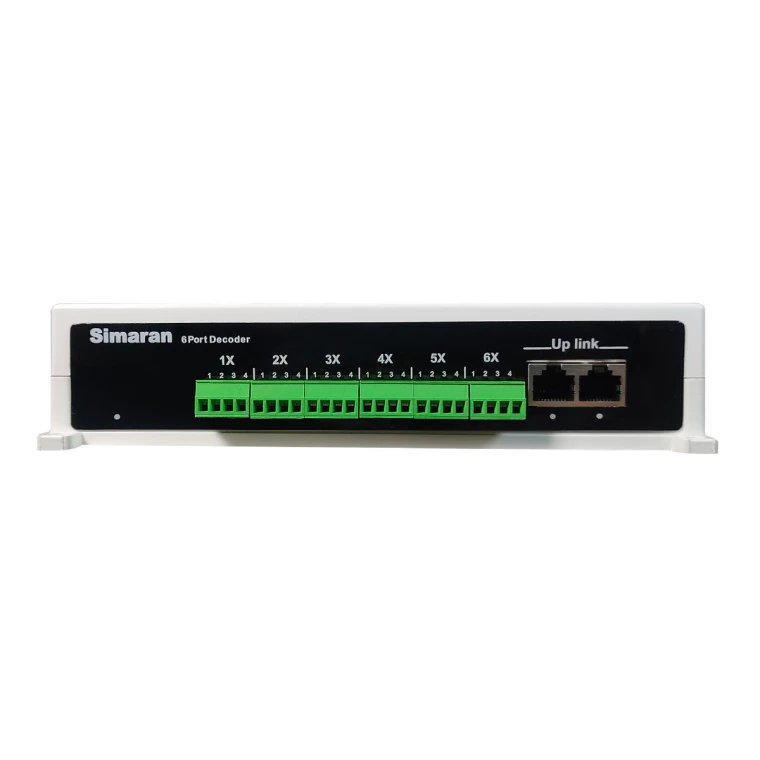 دیکودر سیماران یک قطعه کوچک می باشد که جزء لوازم جانبی پنل ها محسوب می گردد و در جهت بالا بردن کیفیت تصاویری که پنل ها به گیرنده ها منتقل می کنند،مورد استفاده قرار می گیرد.استفاده از دیکودر 8 کانال سیماران کاهش سیم های بین پنل و آیفون تصویری را به دنبال دارد و امکان رفع و رجوع آسان نقص های پنل را فراهم می کند.