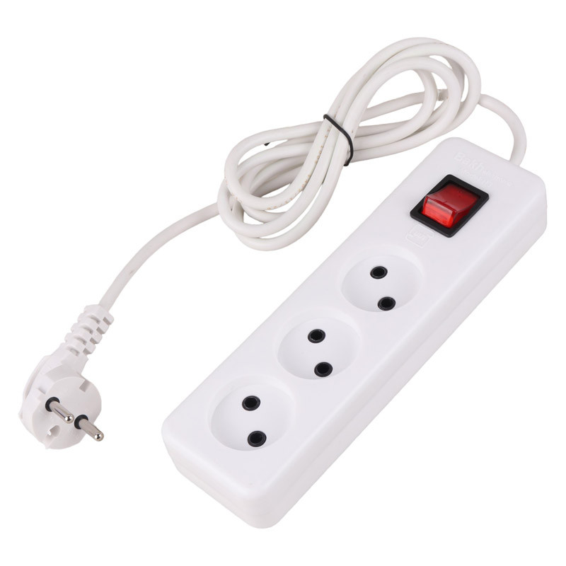 مجهز به 3 عدد پریز بدون ارت، مجهز به یک عدد کلید فیزیکی به منظور انجام عملیات روشن/ خاموش
