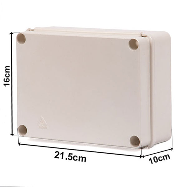جعبه تقسیم روکار در ابعاد دقیق 21.5 در 16 سانتی متر از دو قسمت بدنه و درپوش ساخته شده است که به وسیله پیچ به یکدیگر چفت شده و به دیوار وصل می شود.